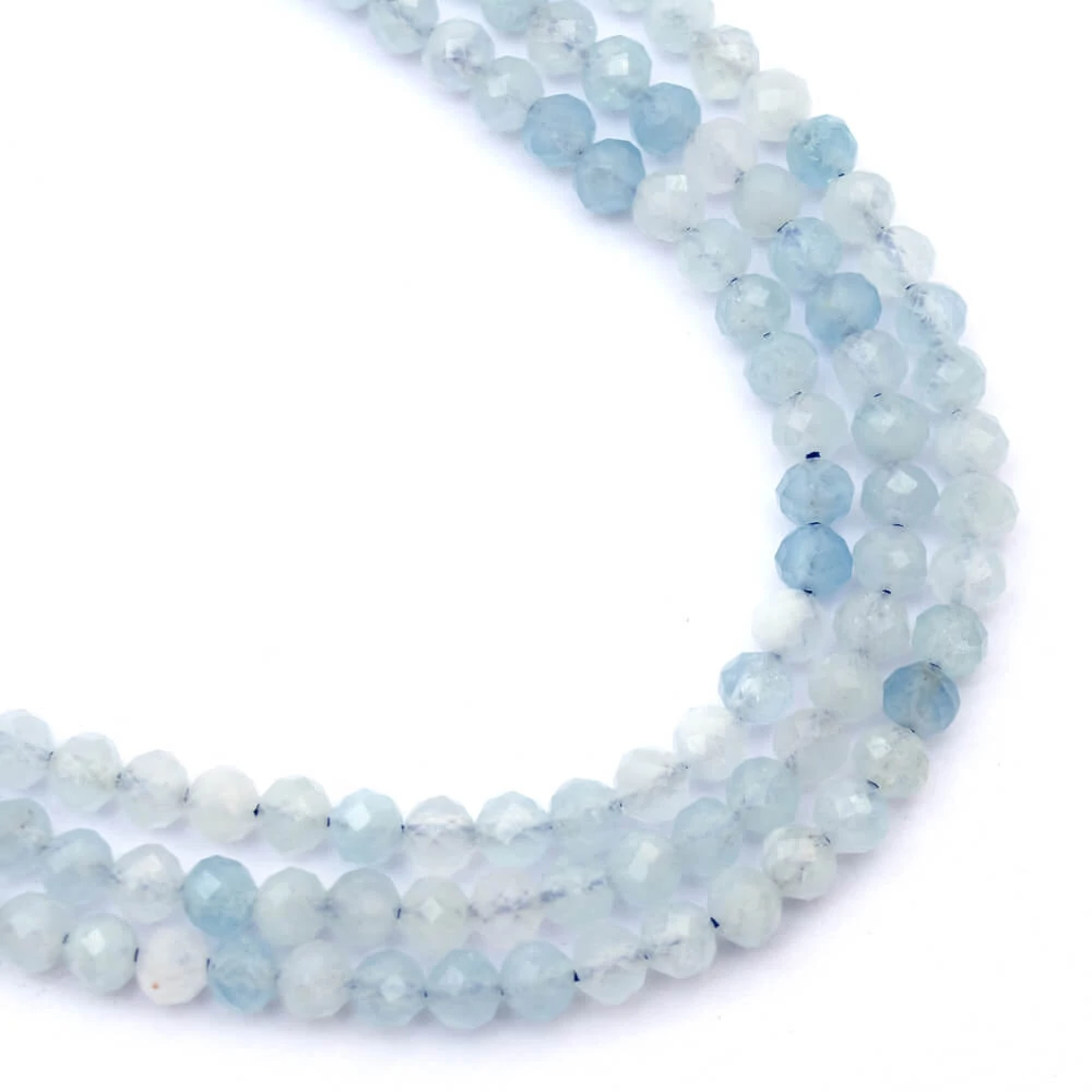 Akvamarin fazettált golyós szál, 3,5 mm, kb. 38 cm