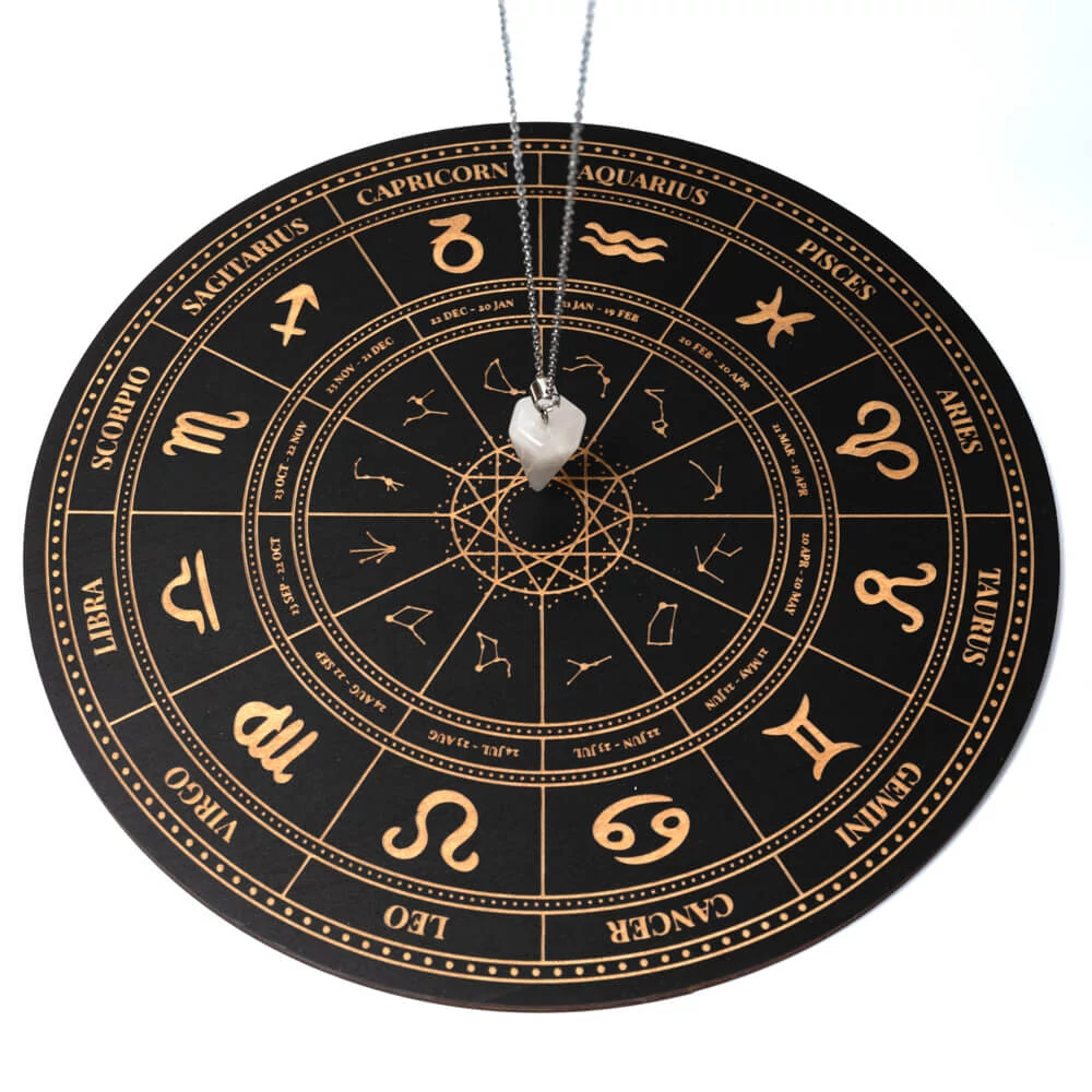 Ingatábla csomag, horoszkópos, fekete színű, rózsakvarc ingával