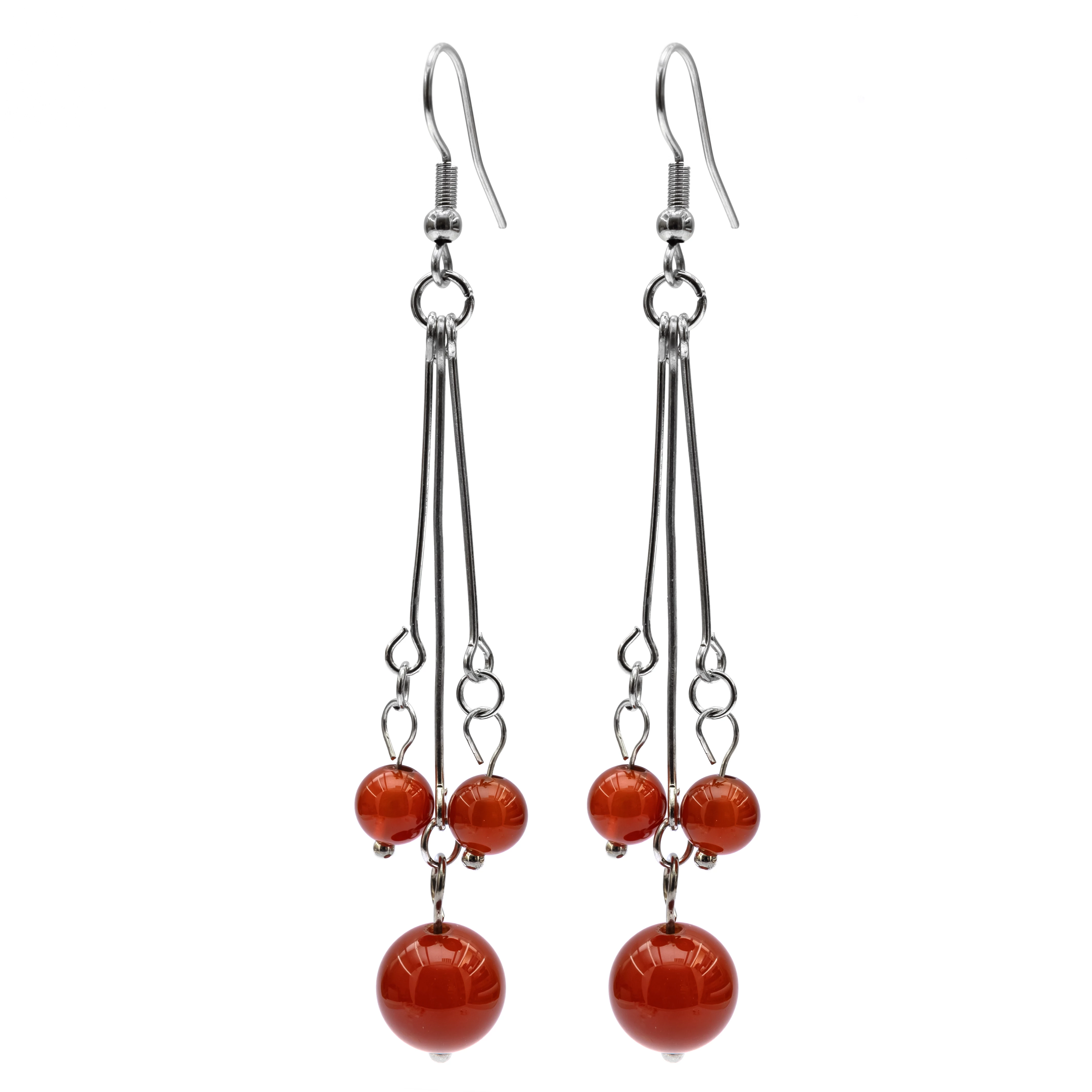 Karneol 3 golyós, lógós fülbevaló, kb. 60-70 mm