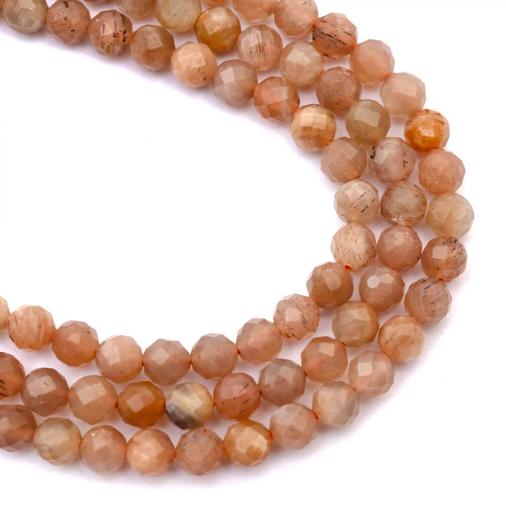 Napkő fazettált golyós szál, 4 mm, kb. 38 cm