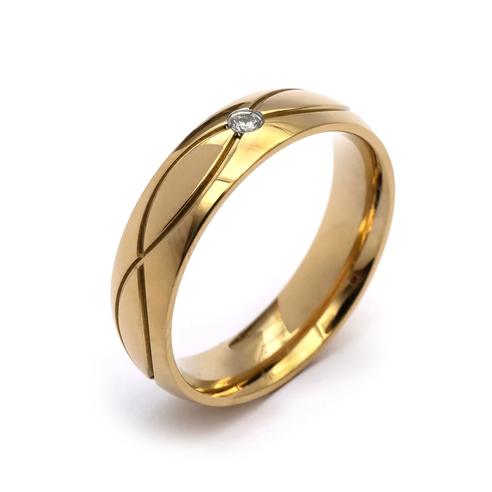 Nemesacél karikagyűrű, arany színű, hullámos, 1 pici kővel, kb. 56-57 méret