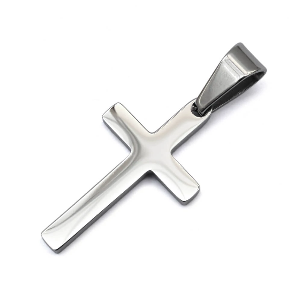 Nemesacél kereszt medál, 28x16x2 mm, 1 db