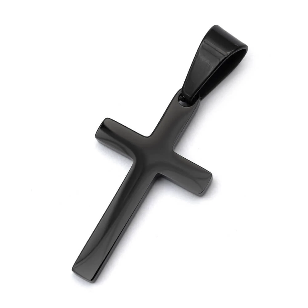 Nemesacél kereszt medál, fekete 28x16x2 mm, 1 db