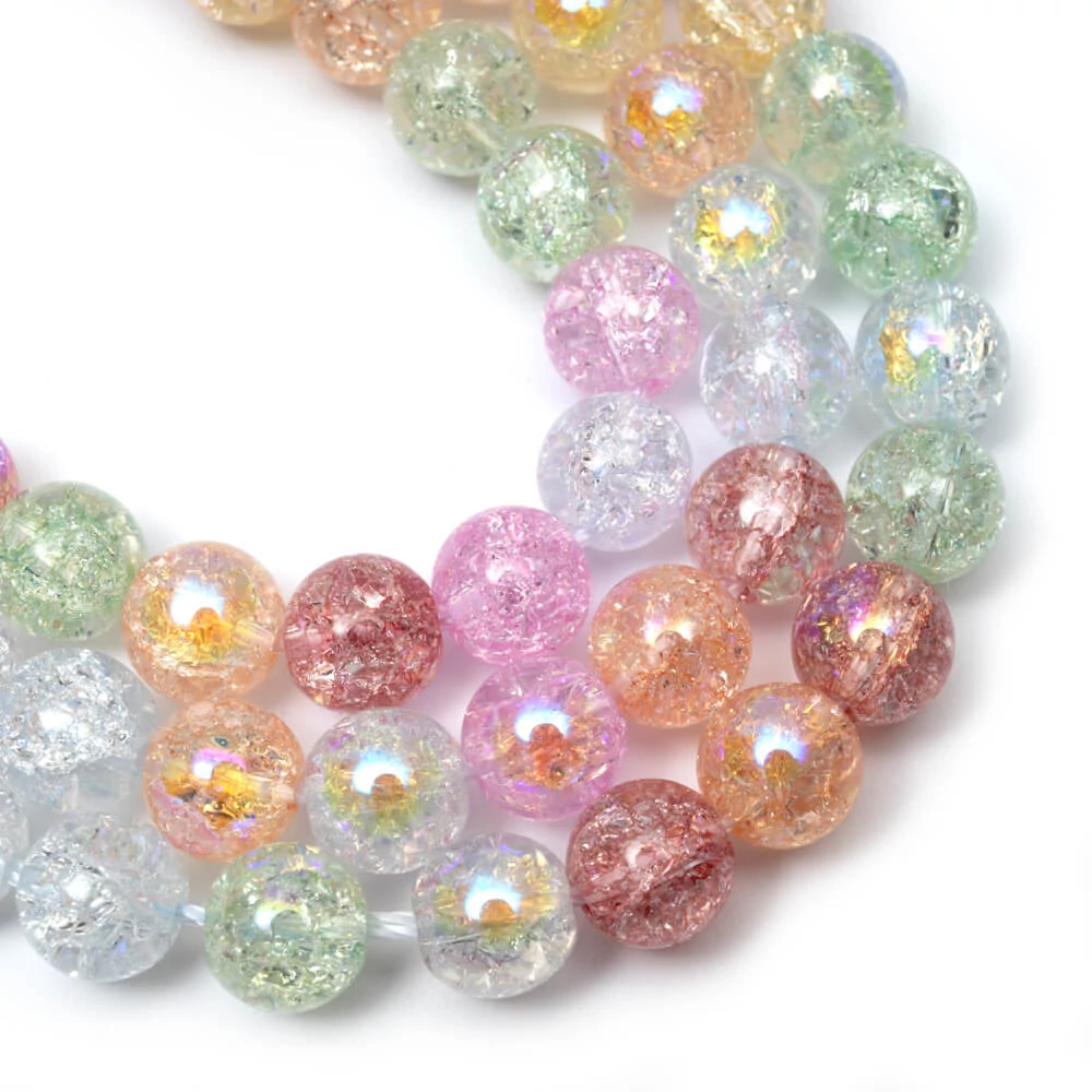Roppantott kristály (szivárvány) golyós szál, 8 mm, kb. 38 cm